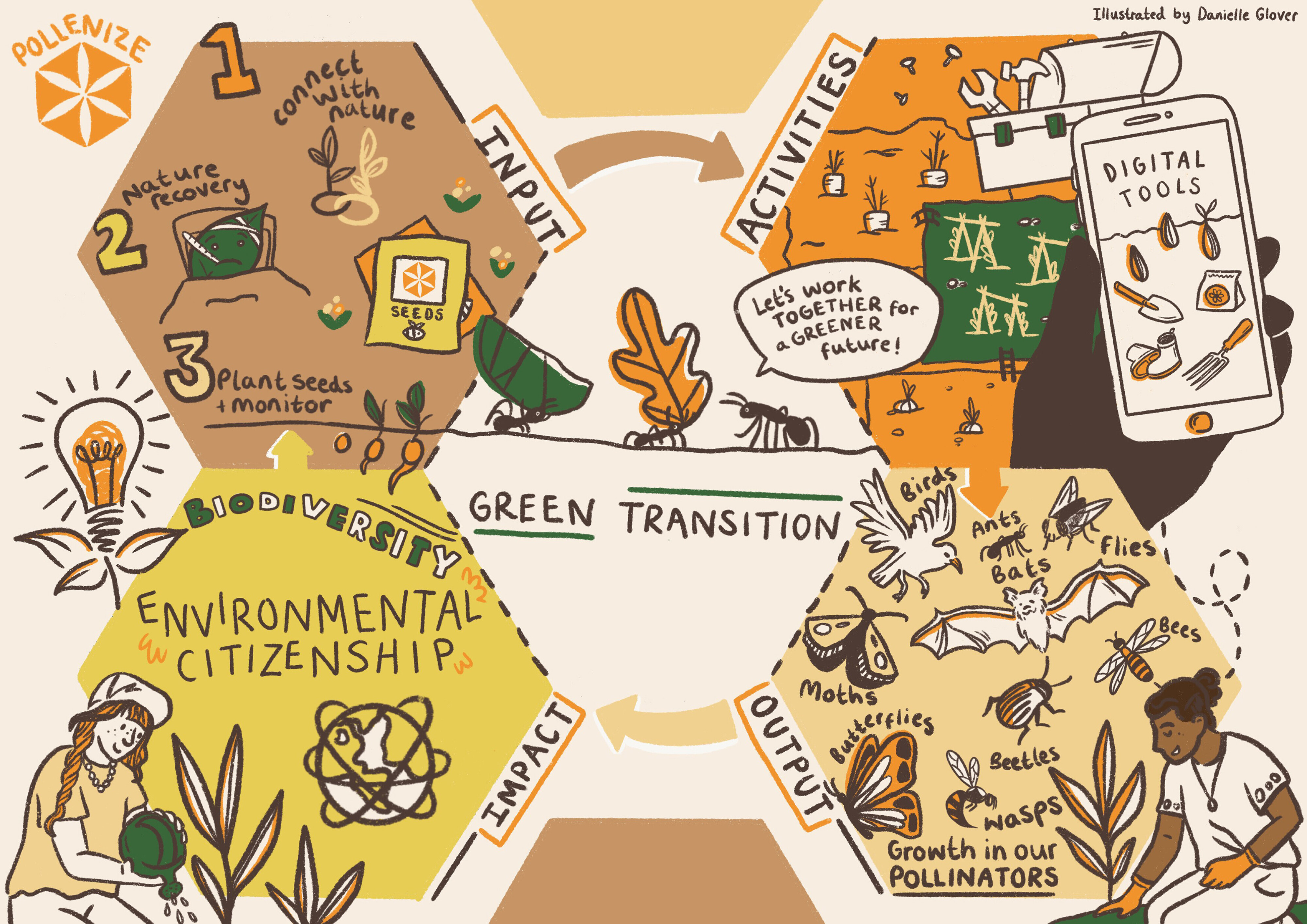 Pollenize are a social enterprise who work to engage people with pollinators. They do this through the development of tools and design-led activities, such as the distribution of seed packets to school children across Plymouth.
