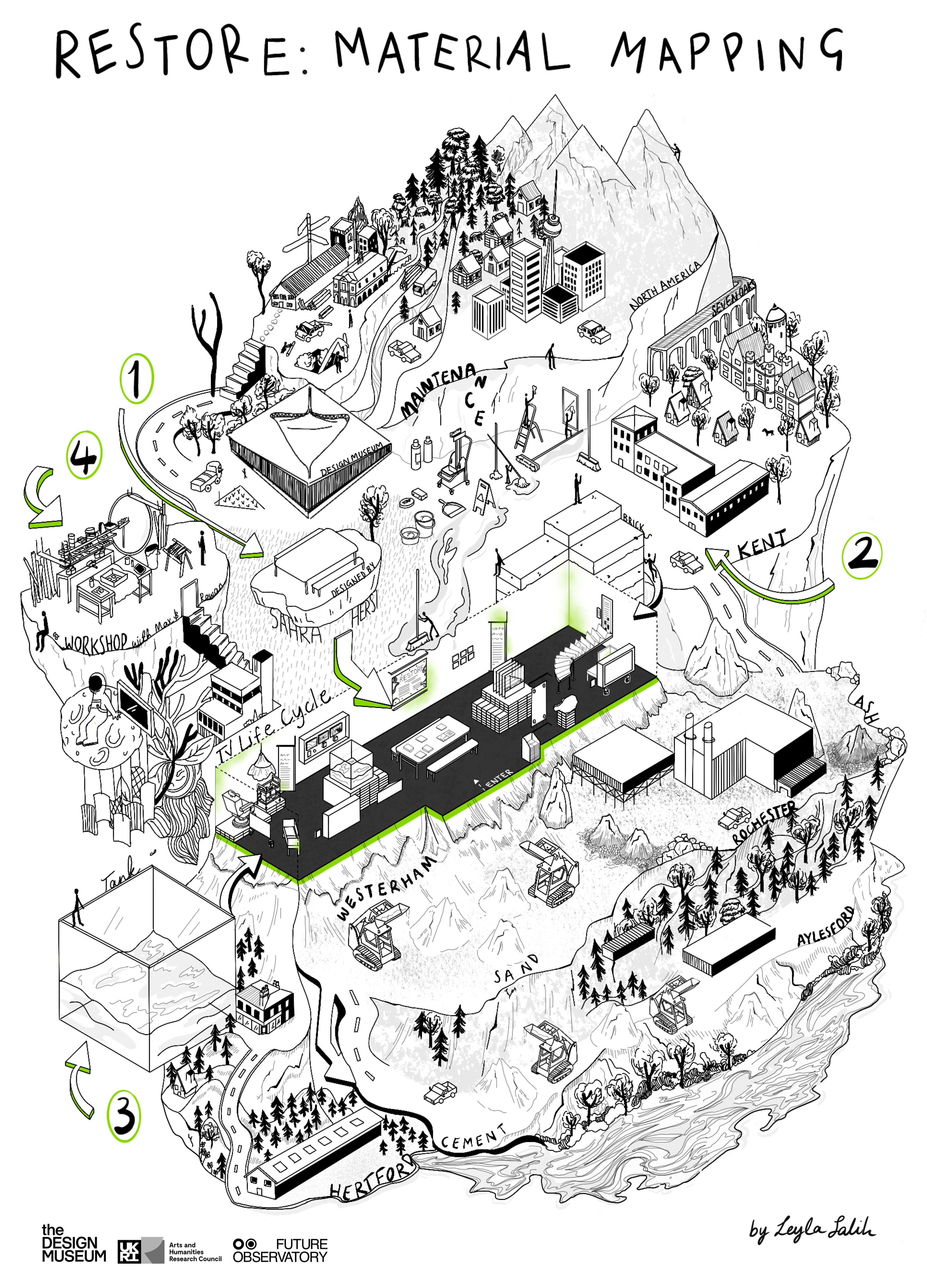 The objects that surround us have invisible threads and relationships with our environment. We can learn a lot from them once we begin to dissect and uncover their hidden stories. Restore: Material Mapping attempts to make visible some of the journeys of the materials used in Design Researchers in Residence: Restore.