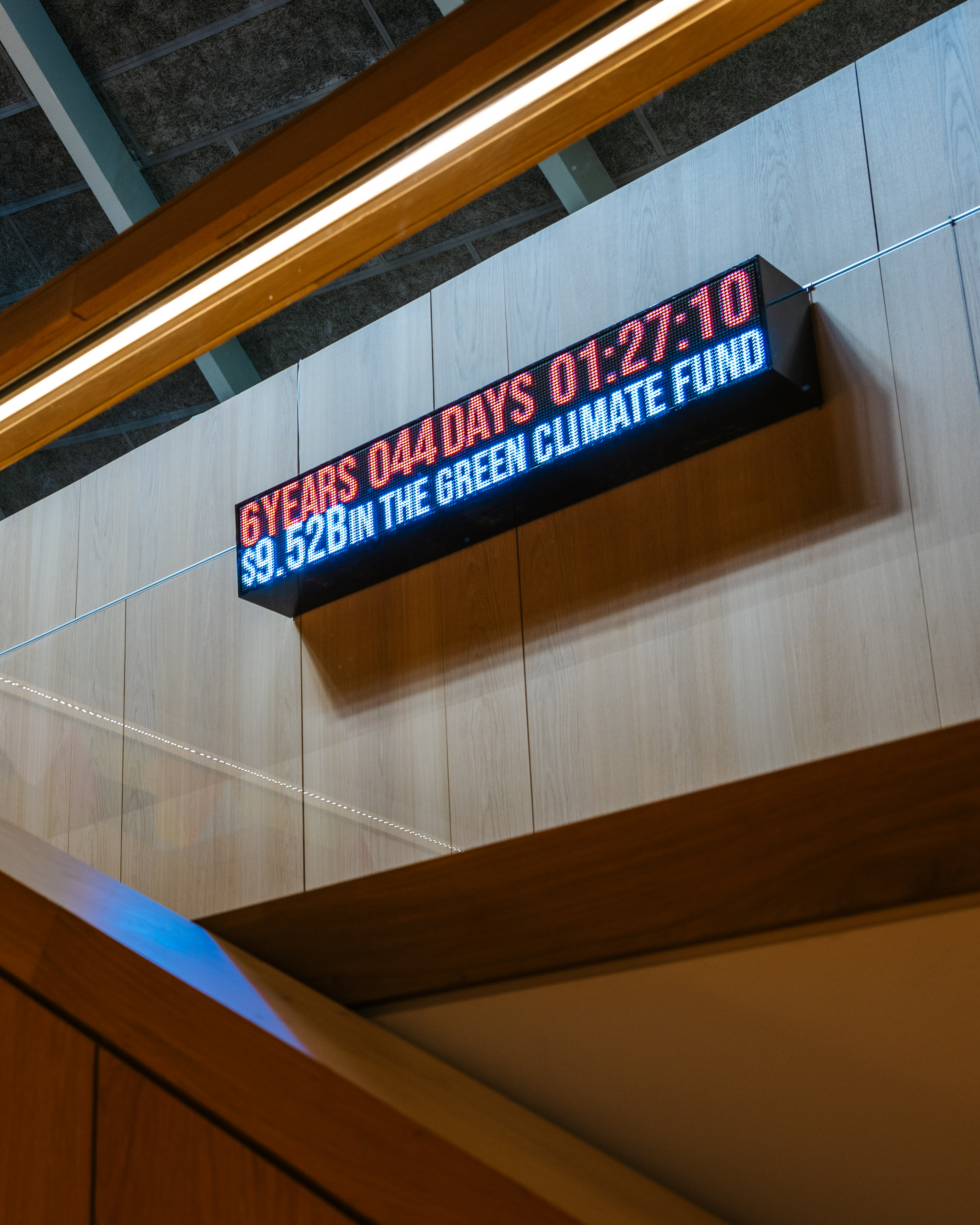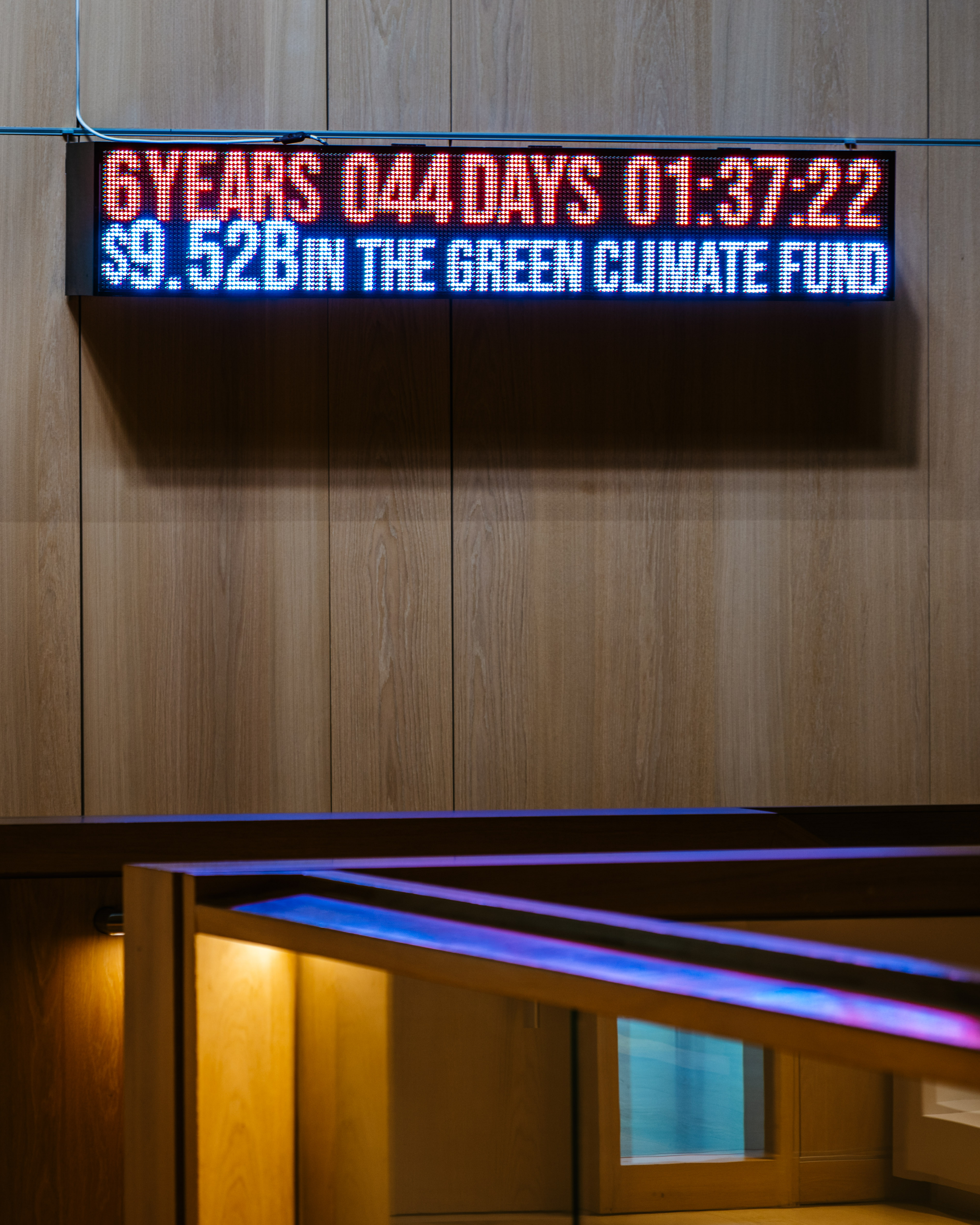 The climate clock is both a graphic display and a global movement calling for action on the climate emergency. It is designed to communicate what must be done to tackle the climate crisis and by when. The clock on display at the Design Museum was driven around the streets of Glasgow during COP26.