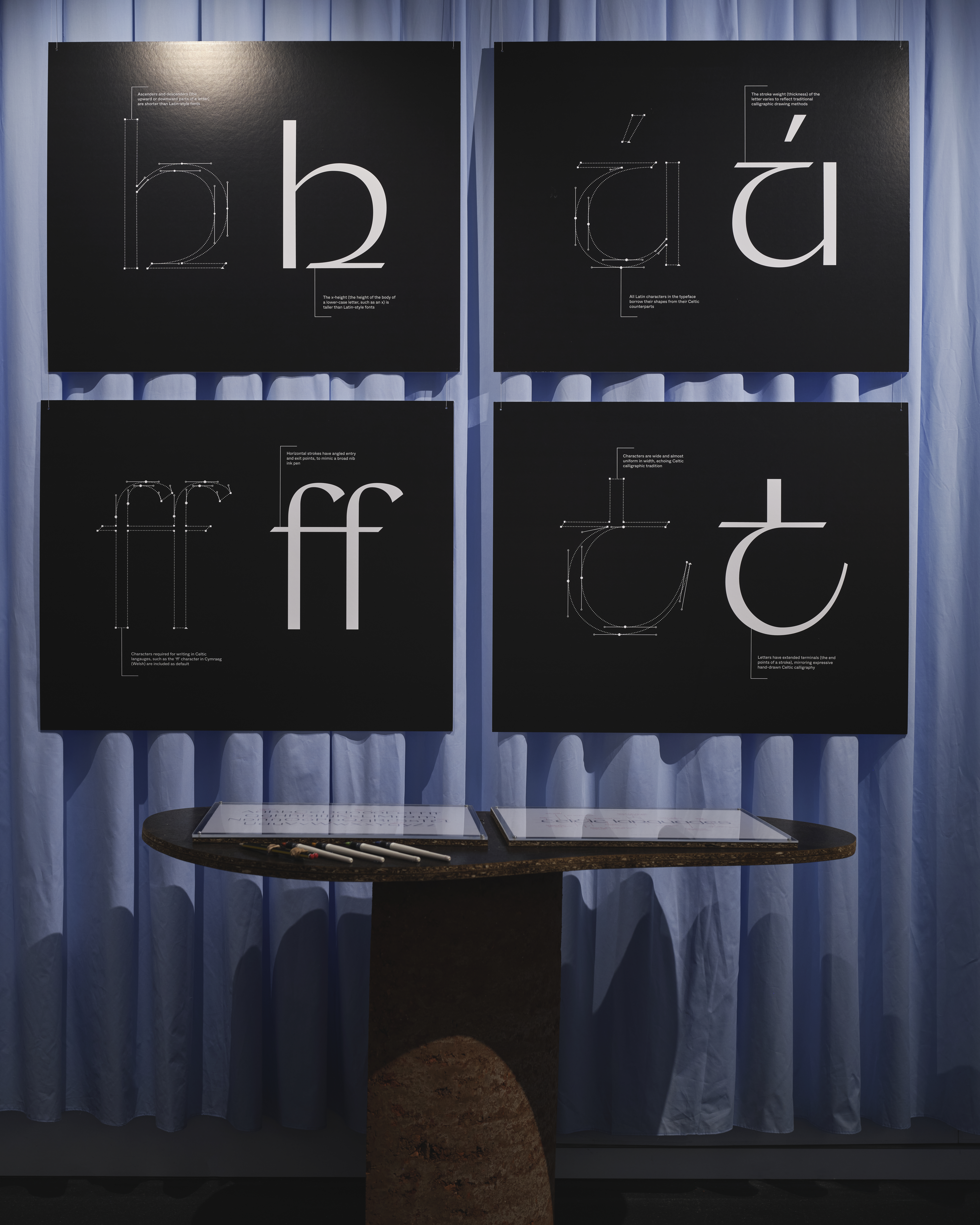 These words provide the basis for a design proposal. During her residency, Isabel has developed Ogma, a new typeface which takes traditional Celtic calligraphy techniques and letters, and re-interprets them for a modern context. In her display, Isabel links linguistic and graphic design research to show how culture and knowledge can be vital tools for confronting the climate emergency.